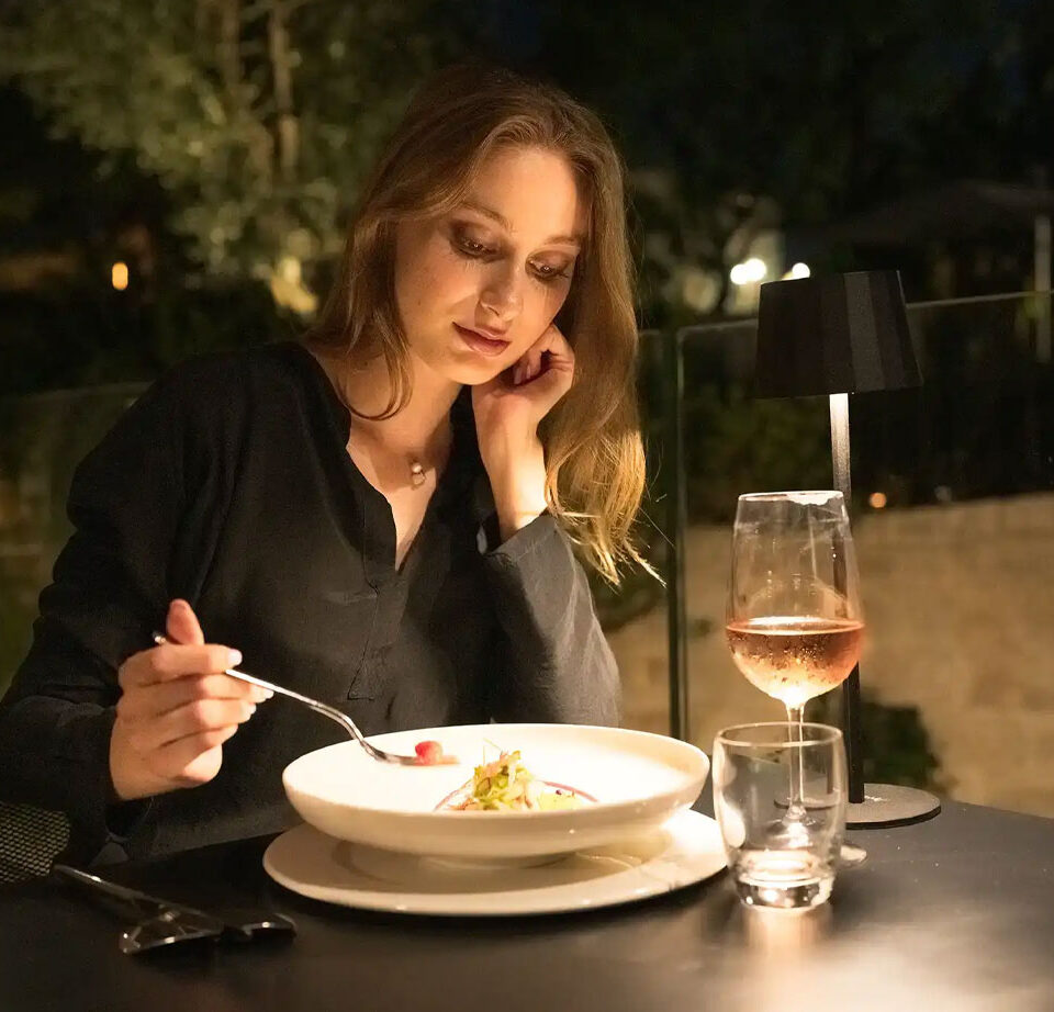 During the summer season, guests can also enjoy the restaurant outdoors on the charming terrace of Villa Romanazzi Carducci, surrounded by the quiet beauty of the park. An exclusive setting where the restaurant’s cuisine can be savored amidst greenery and the timeless atmosphere of the villa.